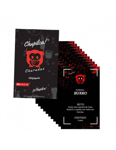 CONTENIDO: 98 cartas (personajes, cosas, oficios o lugares, 98 retos y 90 posibles castigos)