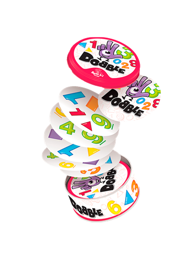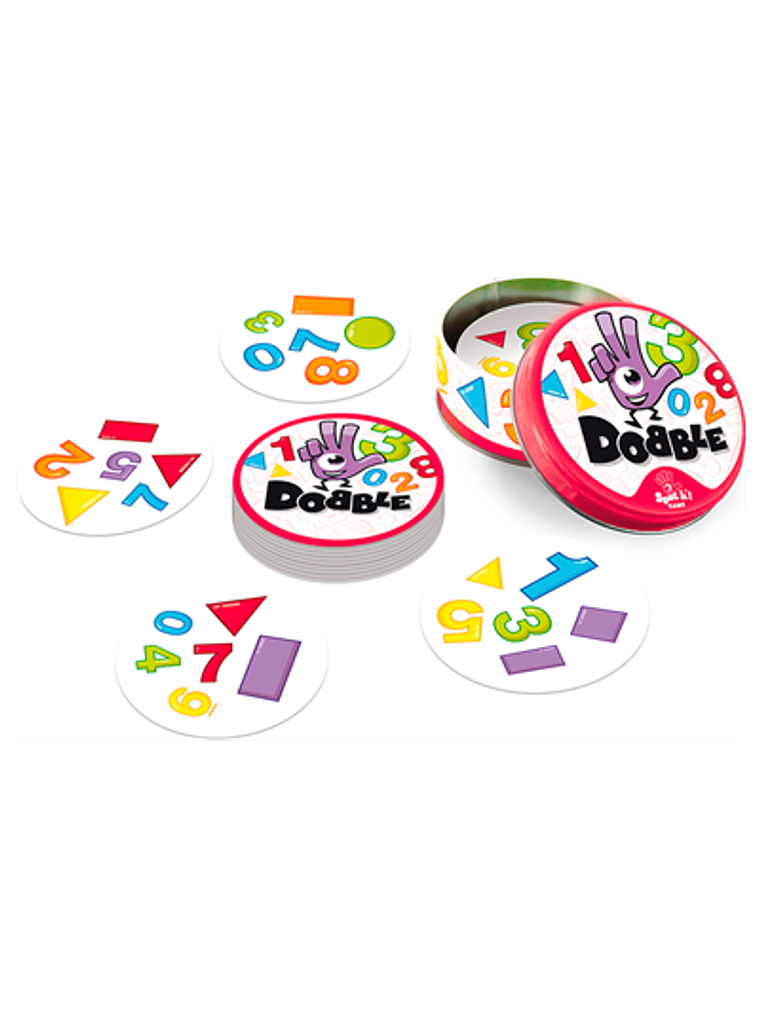 Dobble Formas y números contiene más de 30 símbolos (formas y números), 30 cartas, 6 símbolos por carta y siempre hay uno (y sólo uno) idéntico entre dos cartas… ¡y tendrás que descubrir cuál!