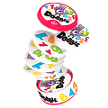 ¿Todavía no has jugado Dobble? Coge 2 cartas y colócalas boca arriba sobre la mesa. Busca el símbolo que aparece en las dos cartas (la misma forma, mismo color, sólo el tamaño puede ser diferente). El primer jugador que lo encuentre, tendrá que nombrarlo en voz alta para ganar estas cartas. Después colocará dos nuevas cartas, para seguir jugando. Puedes jugar todo el tiempo que quieras, siempre habrá un sólo símbolo igual entre dos cartas.