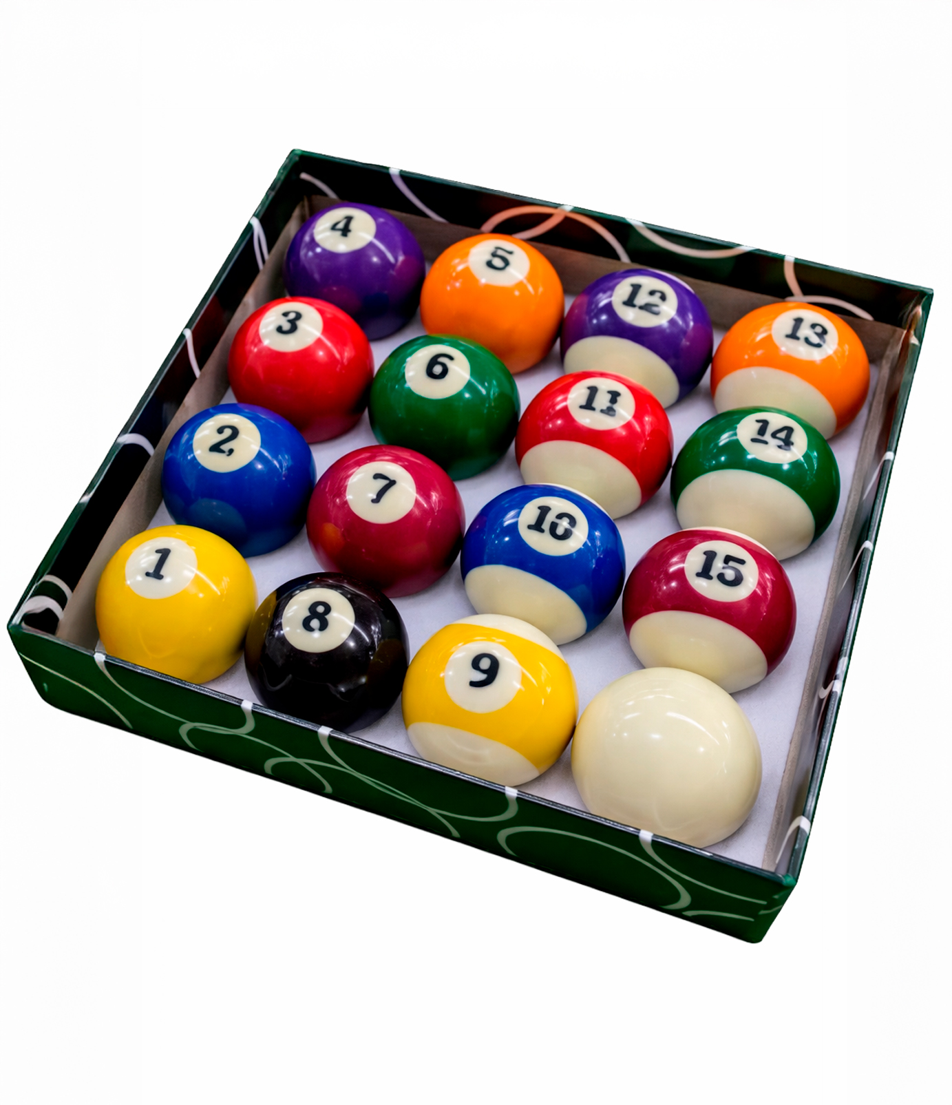 Gracias a su diámetro estándar de 1 7/8” (47 mm), son totalmente compatibles con mesas pequeñas y accesorios de poolina, convirtiéndose en el complemento ideal para renovar o reemplazar juegos de bolas desgastados.