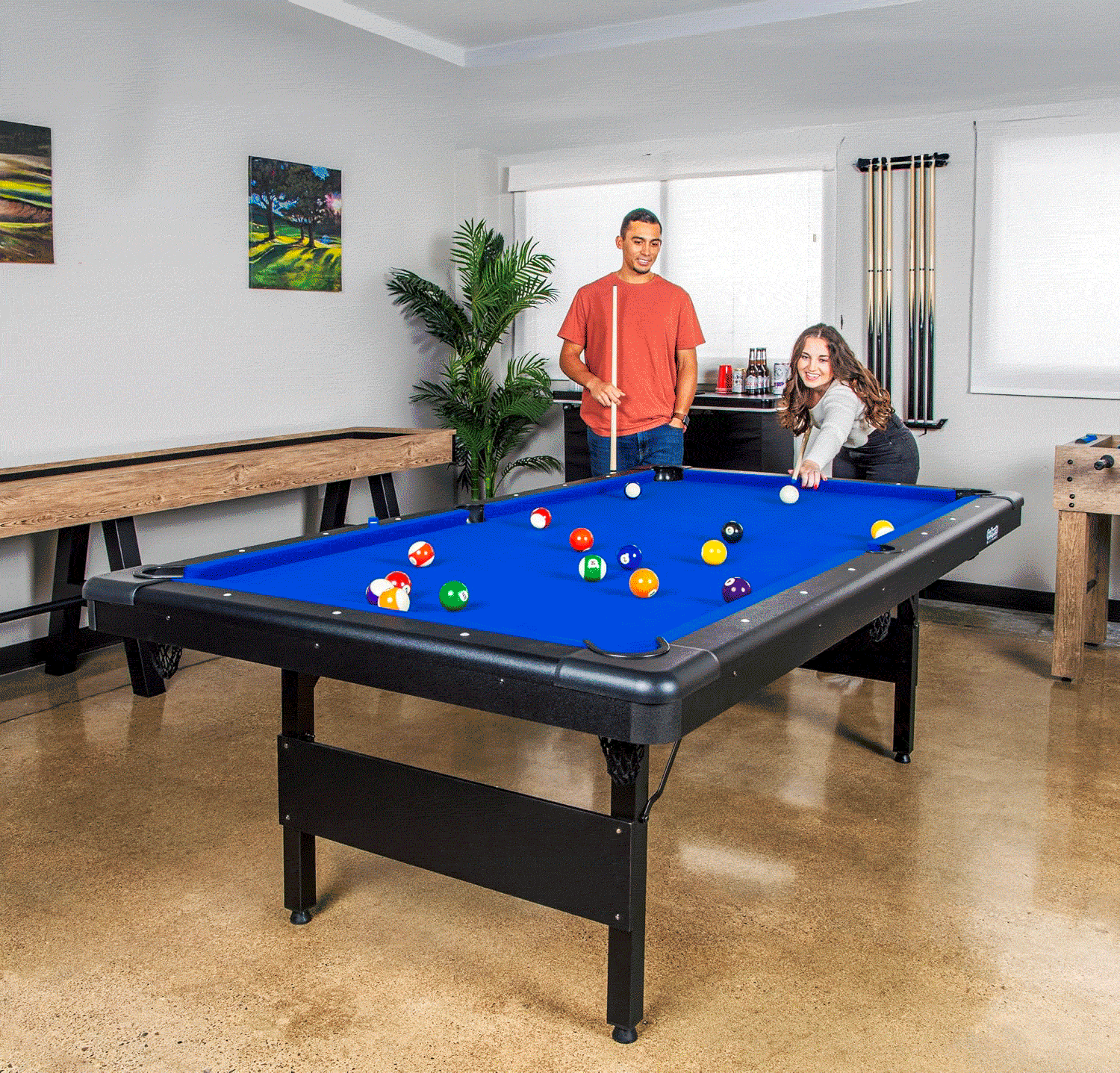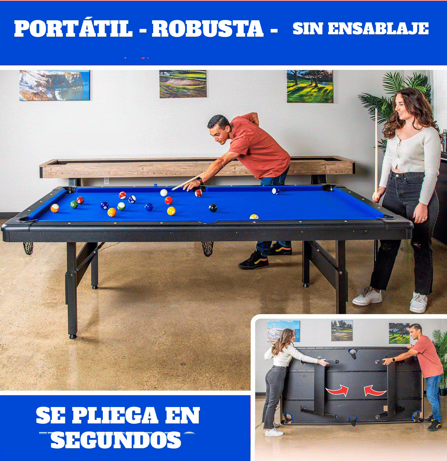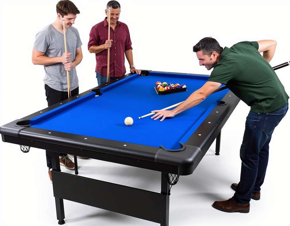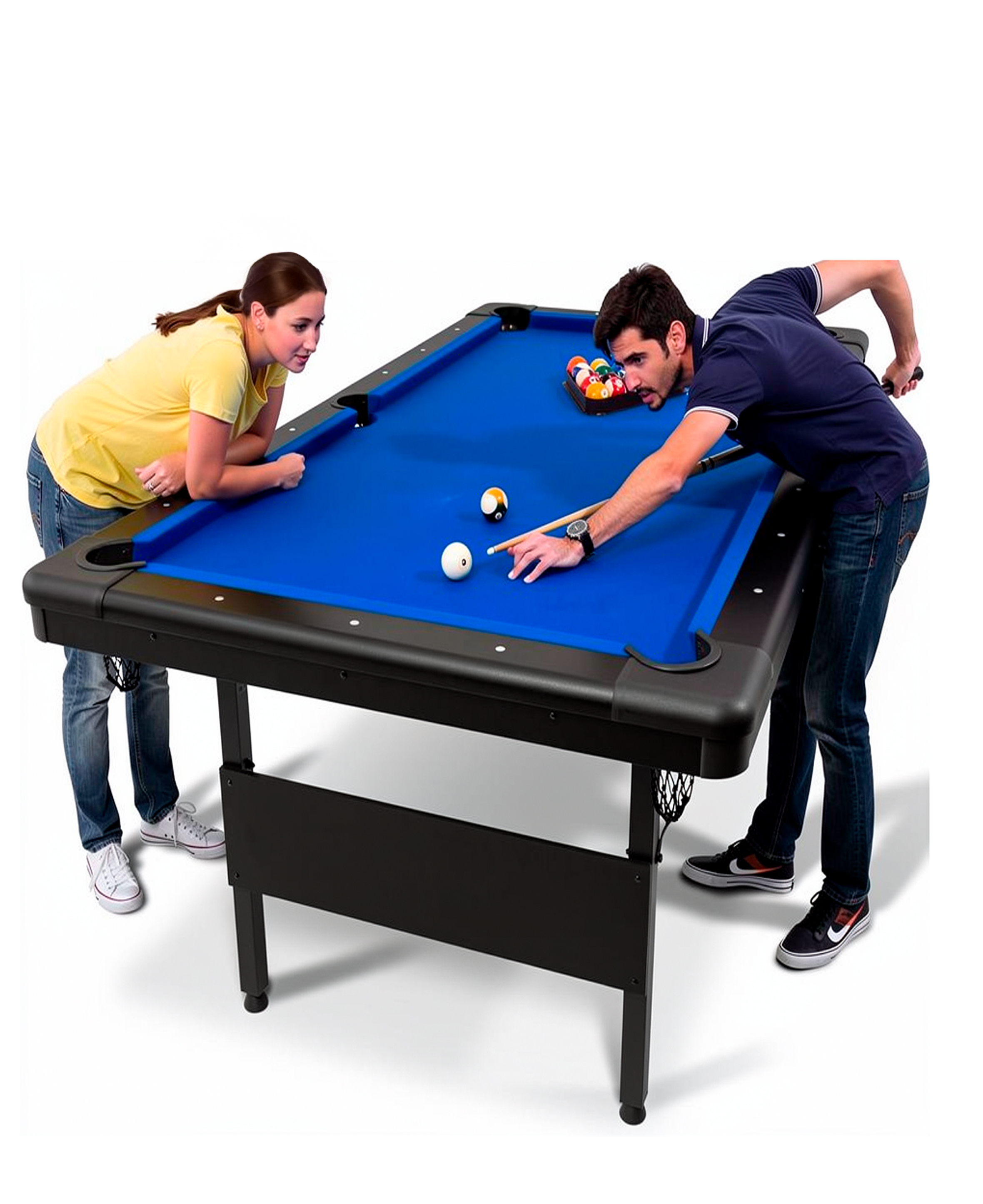 La Mesa de Pool Plegable 7 Pies (210 x 120 cm) es la solución perfecta para quienes buscan disfrutar del billar sin sacrificar espacio. Su diseño plegable permite guardarla fácilmente en departamentos, casas pequeñas o salas de entretenimiento, manteniendo siempre una excelente estabilidad durante el juego.