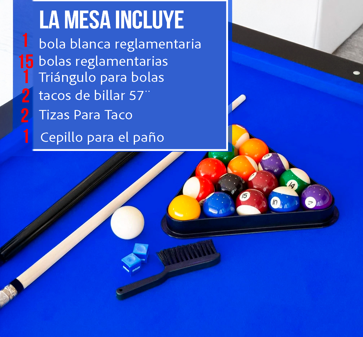 LA MESA DE BILLAR INCLUYE: