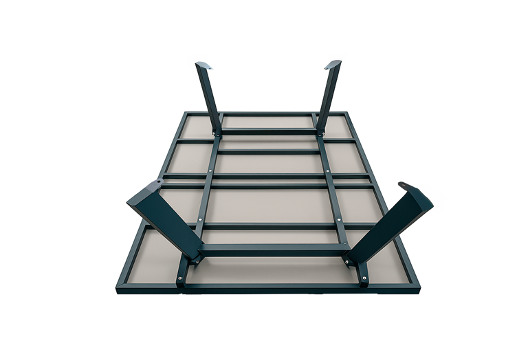 Fabricada con marcos y patas metálicas de aluminio de 50 mm, esta mesa ofrece una resistencia superior frente a condiciones climáticas adversas como lluvia, nieve o granizo. Además, cuenta con protecciones de goma en las esquinas, garantizando seguridad para toda la familia.