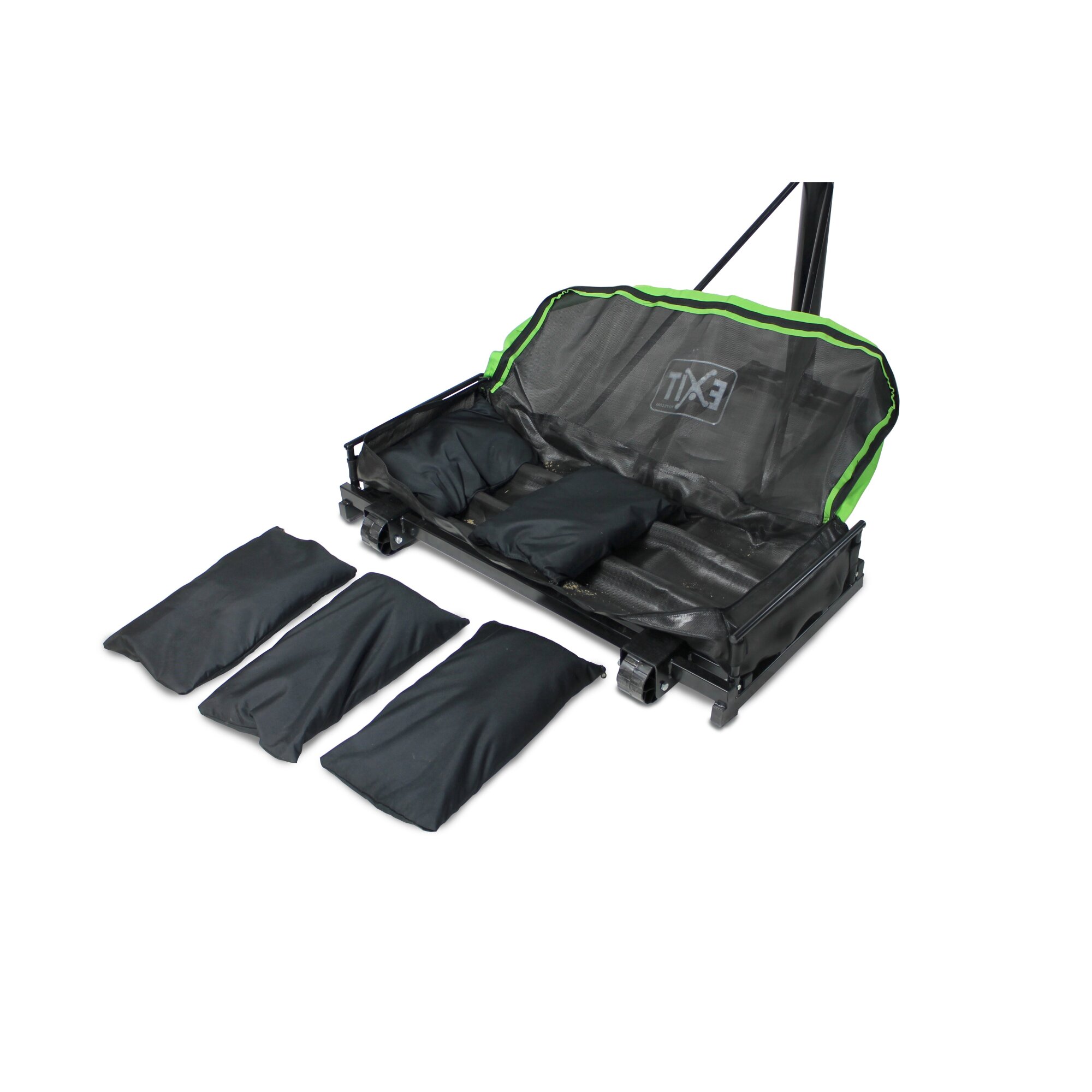 El marco del tablero de baloncesto Comet portátil tiene dos ruedas resistentes y un contrapeso. Esto le permite mover fácilmente el tablero de baloncesto inclinando ligeramente el marco. Incluso los niños pueden mover el tablero de baloncesto. Los cinco sacos de arena suministrados para el contrapeso se llenan y se empujan a través de la cubierta, manteniendo el marco firmemente en su lugar.