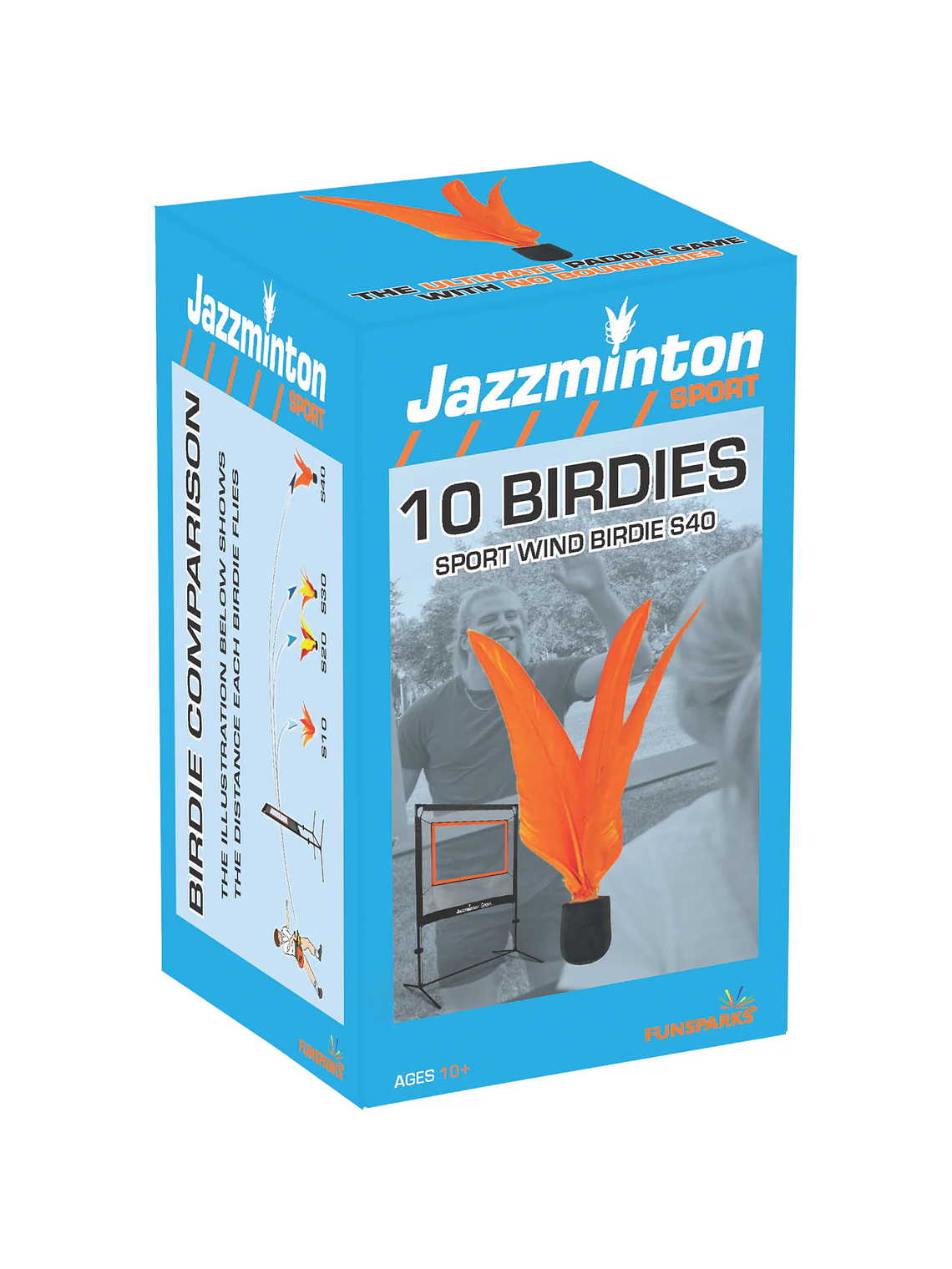 Los birdies S40 son los más resistentes y veloces de la línea Jazzminton Sport, superando en distancia de vuelo a los modelos Indoor. Perfectos para jugadores que buscan mayor desafío y realismo, sin perder control ni estabilidad.