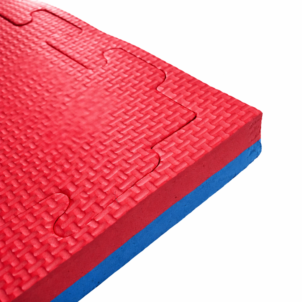 Fabricado en espuma de goma EVA de alta densidad, ofrece una superficie acolchada, firme y confortable, ideal para absorber impactos y reducir el riesgo de lesiones durante entrenamientos intensivos. Su diseño bicolor permite delimitar zonas de práctica de forma visual y ordenada, facilitando la organización del espacio.